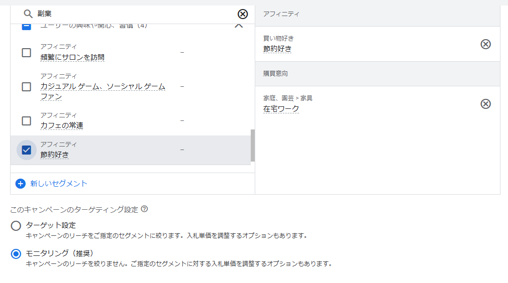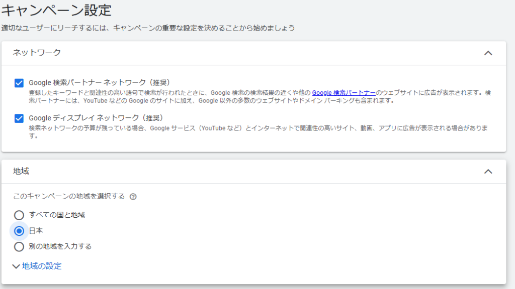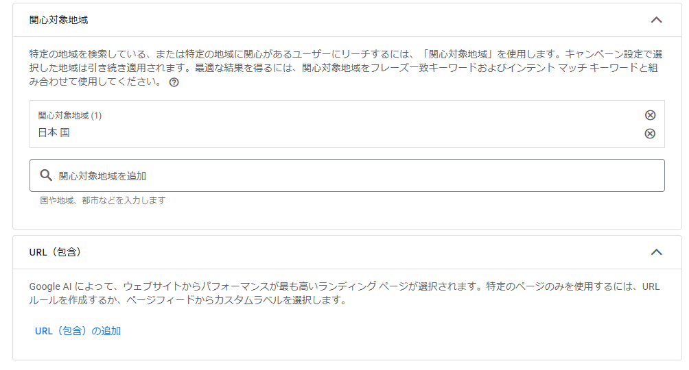 ・ここの関心対象地域はターゲットを絞ってください。日本を選んでますが、地域に限定するなら対象を確実に絞ってください。