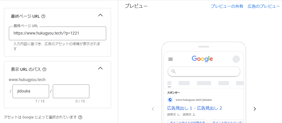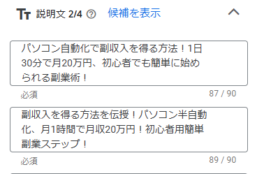 ・ここの「広告~」の部分に一番該当しそうなキーワードを入れます。