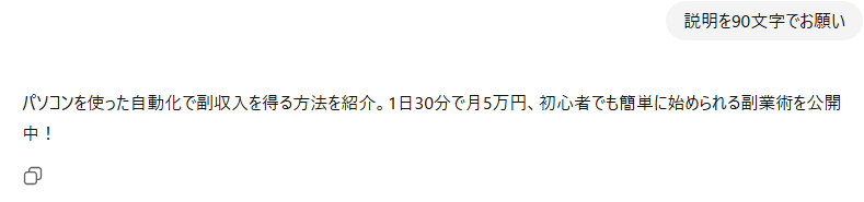 ・次に説明分をいれます。これもCHAT-GPTにお願いします