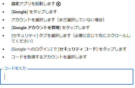 ・ここでコードを求められることがあります。スマホを準備して対応してください