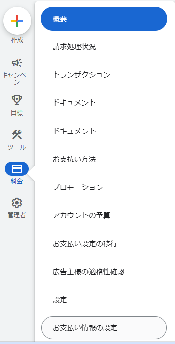 ・初めての方はキャンペーン内容が完了したら、お金を振り込みます。自動にしていない方は左の「料金」から「お支払い情報の設定」を押します。