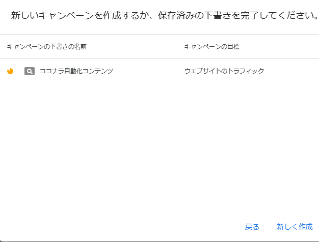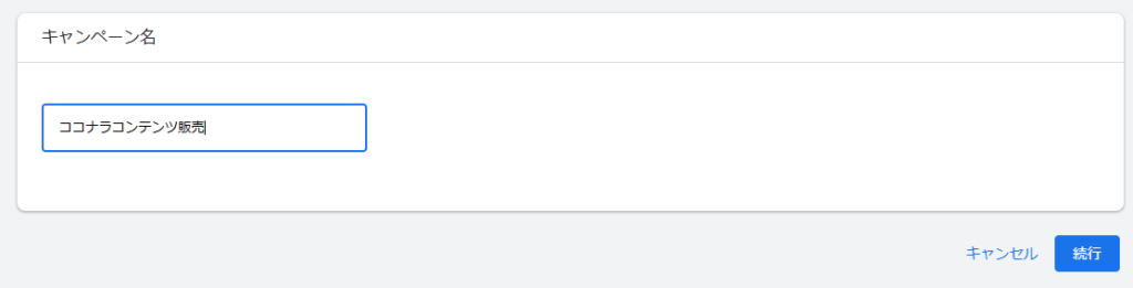 ・キャンペーンの名前(自分が判断しやすい名前)を入力